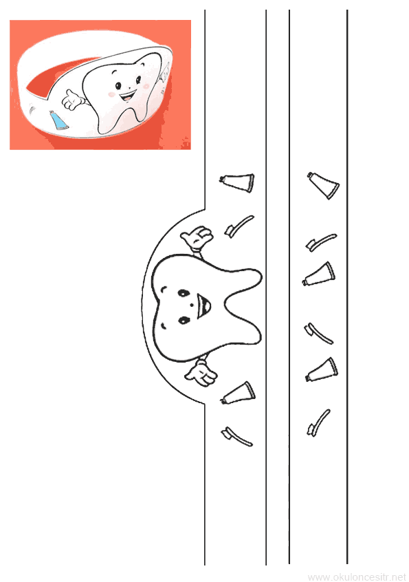 • Biri mutlu biri üzgün olan iki diş resmi çocuklara verilir.