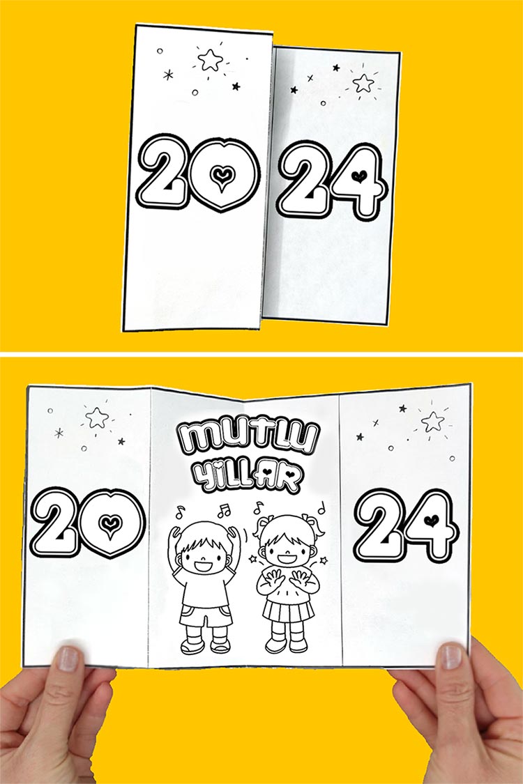 Okulöncesi 2024 yeni yıl etkinliği, 2024 yılbaşı etkinliği, anasınıfı yılbaşı etkinliği kalıbı, 2024 etkinlik kalıbını ücretsiz indirebilirsiniz. İstediğiniz renklerde boyama yaparak güzel bir 2024 etkinliği oluşturabilirsiniz.