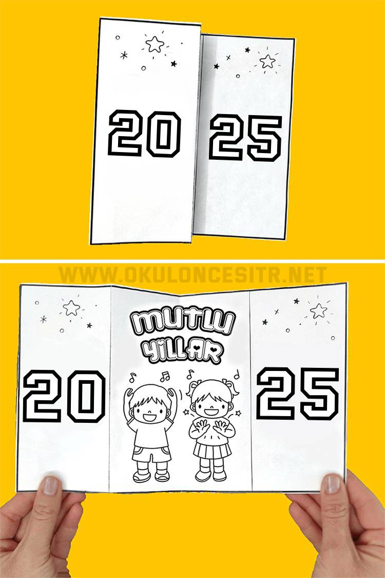 Okulöncesi anasınıfı 2025 yeni yıl etkinliği, 2025 yılbaşı etkinliği, anasınıfı yılbaşı etkinliği kalıbı, 2025 etkinlik kalıbını ücretsiz indirebilirsiniz. İstediğiniz renklerde boyama yaparak güzel bir 2025 etkinliği oluşturabilirsiniz.