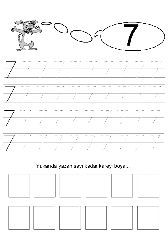 7 sayısı rakamı çalışma sayfası ve 7 rakamı yazma çalışmaları etkinlikleri oyunları, kağıdı indirme çıktı alıp yazdırma. Free numbers worksheets download and printable preschool kids.