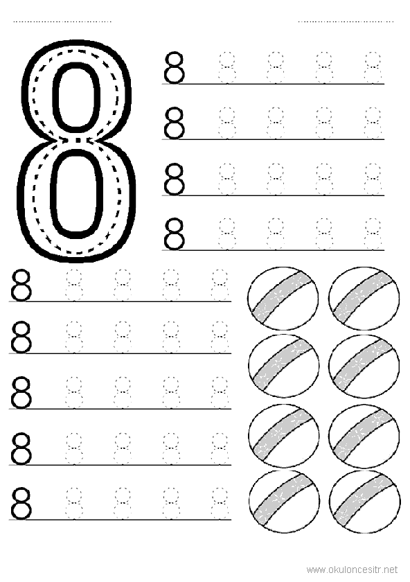 8 sayısı rakamı çalışma sayfası ve 8 rakamı yazma çalışmaları etkinlikleri oyunları, kağıdı indirme çıktı alıp yazdırma. Free numbers worksheets download and printable preschool kids.