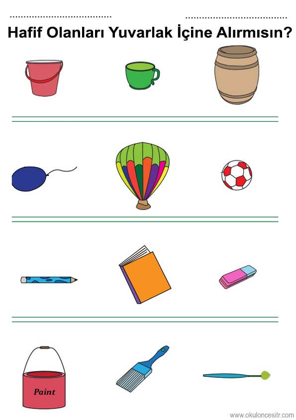 Ağır hafif kavramı çalışma sayfası ve ağır hafif miktar kavramı çalışmaları etkinliği, oyunu örnekleri kağıdı indirme ve çıktı yazdırma. Free heavy and light worksheets download printable.