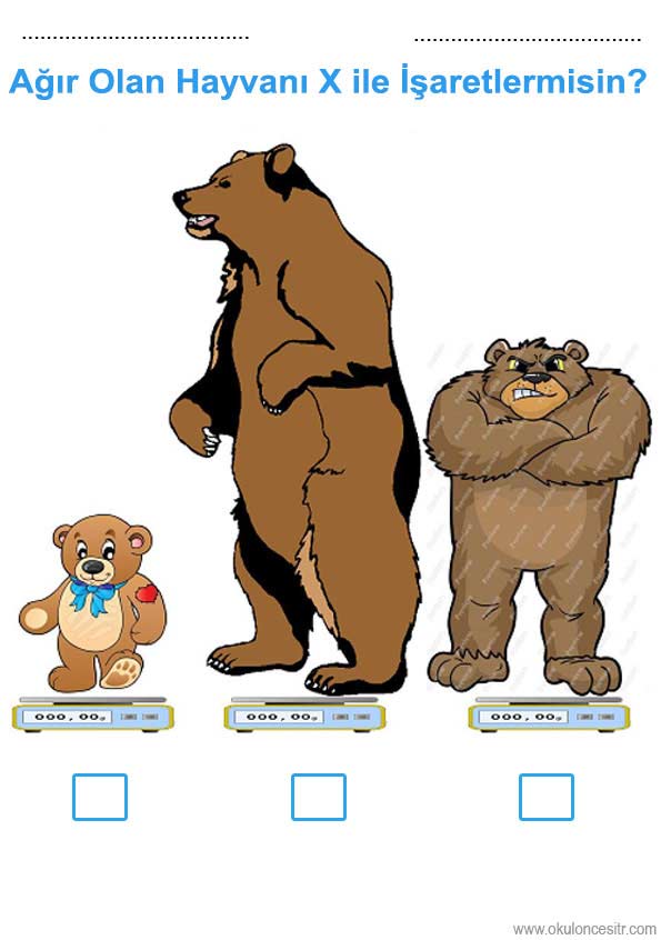 Ağır hafif kavramı çalışma sayfası ve ayı ağır hafif miktar kavramı çalışmaları etkinliği, oyunu örnekleri kağıdı indirme ve çıktı yazdırma. Free heavy and light worksheets download printable.