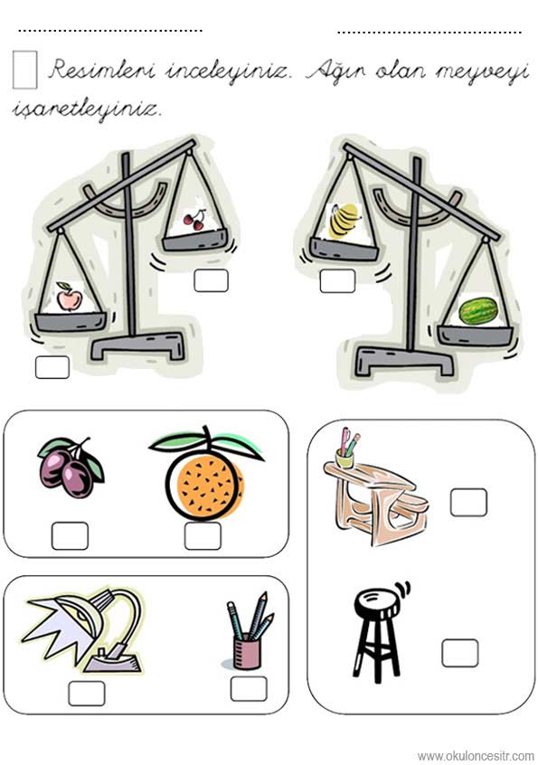 Ağır hafif kavramı çalışma sayfası ve tartı ağır hafif miktar kavramları çalışmaları etkinliği, oyunu örnekleri kağıdı indirme ve çıktı yazdırma. Free heavy and light worksheets download printable.