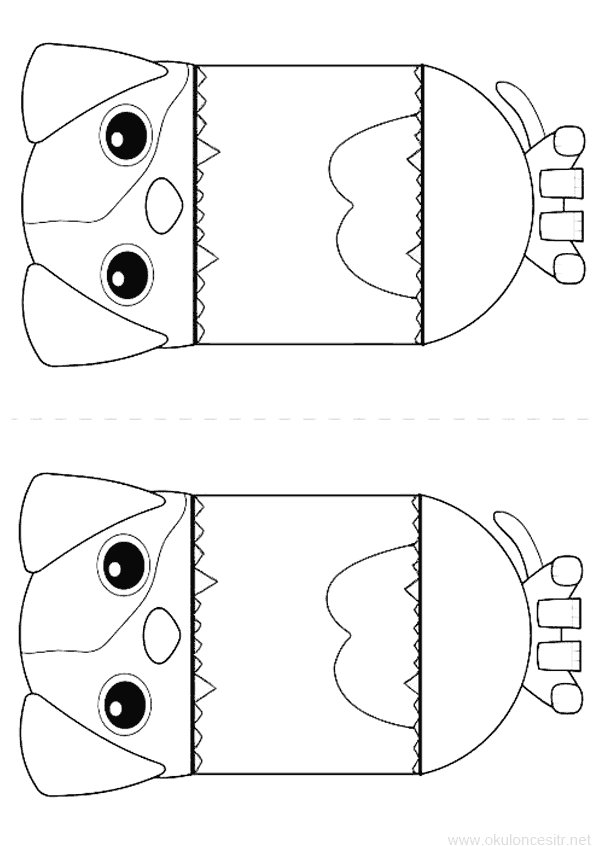 Okul öncesi anasınıfı etkinlikleri ağzı açılan köpek kalıbı, ağzı açılıp kapanan köpek kalıbı, ağızı açılan hayvanlar üç boyutlu kalıp indir, yazdır.