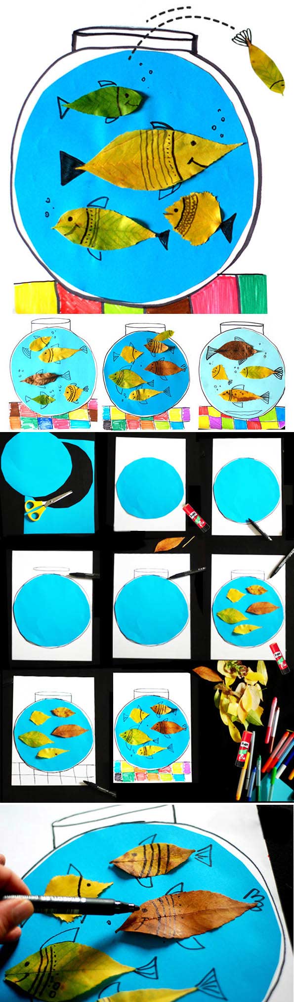 Akvaryum yapımı, yapraklardan balık akvaryum yapımı, yaprak etkinlikleri, nasıl yapılır.