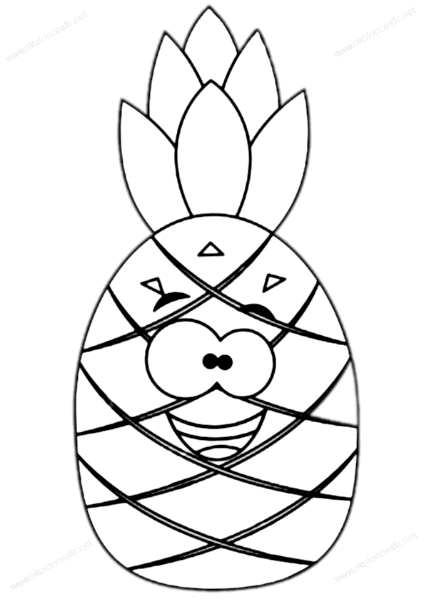 Sırıtan sevimli okul öncesi, anasınıfı ve küçük çocukların el gelişimi için ananas boyama sayfası, ananas boyama kağıdı, ananas resmi, ananas boyaması, meyve boyama sayfası, meyva boyama sayfası, ananas meyvesi resmi, ananas şekli, ananas resmi kalıbı indirme sayfası.