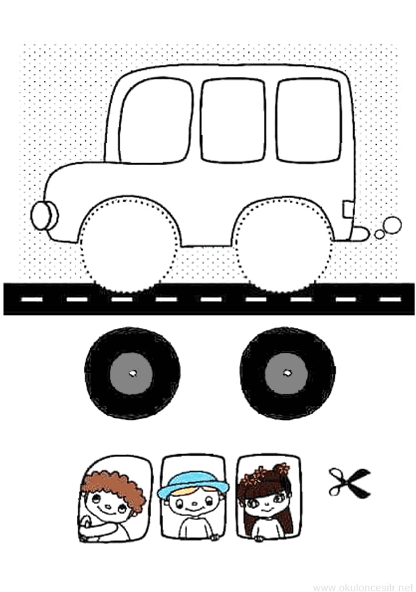 Okul öncesi anasınıfı etkinlikleri için üç boyutlu otobüs araba kalıbı, araba yapımı, araba yapmak, araba çizimi. Three-dimensional car pattern for preschool kindergarten activities, car making, making cars.