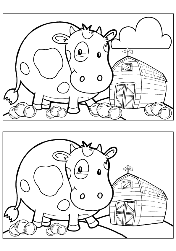 İnek iki resim arasındaki 7 farkı bulmaca sayfaları kağıdı ve aradaki farkı bul çalışma kağıtları sayfaları indir yazıcıdan yazdırın, çıktı alın. Free find the difference worksheets printables.