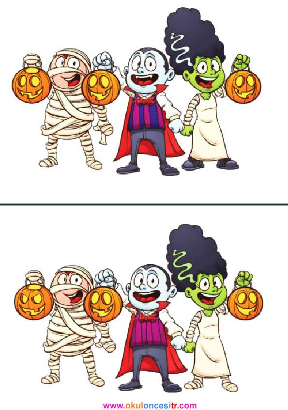 İki resim arasındaki 7 farkı bulmaca sayfaları kağıdı ve cadılar bayramı günü aradaki farkı bul çalışma kağıtları bilgisayarınıza indirip yazıcıdan yazdırın, çıktı alın. Free find the difference worksheets printables.