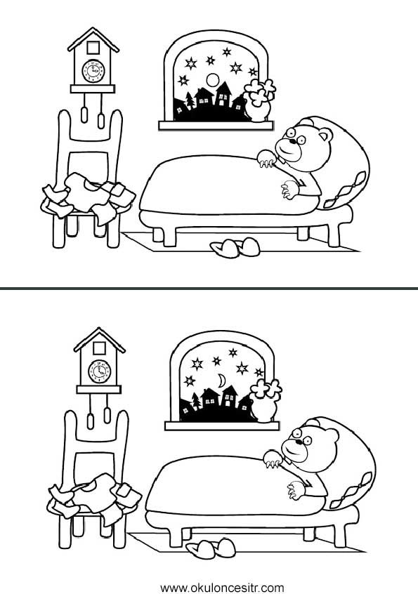İki resim arasındaki 7 farkı bulmaca sayfaları kağıdı ve uyku zamanı aradaki farkı bul çalışma kağıtları bilgisayarınıza indirip yazıcıdan yazdırın, çıktı alın. Free find the difference worksheets printables.