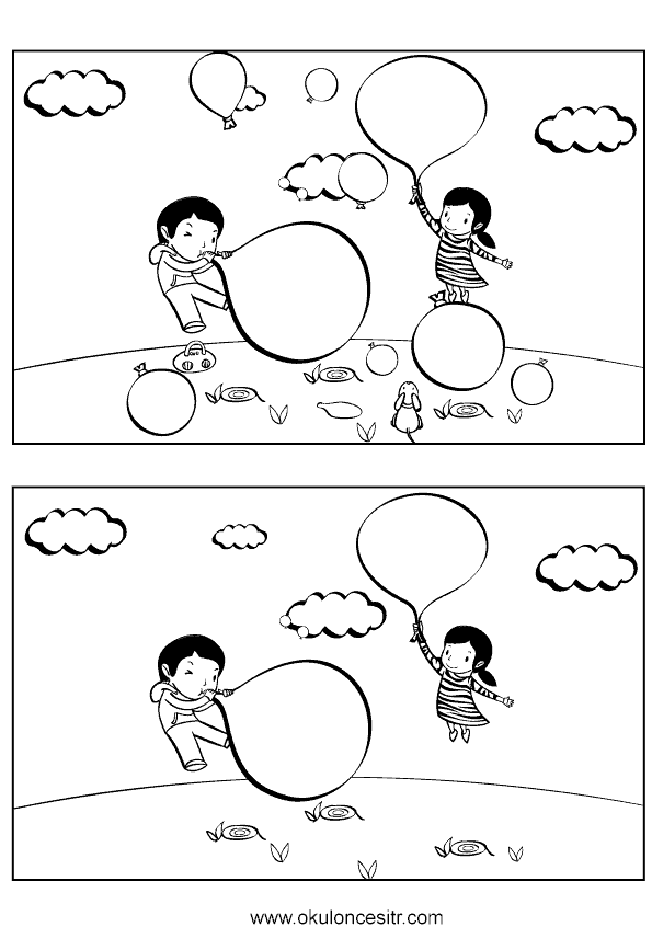 İki resim arasındaki 7 farkı bulmaca sayfaları kağıdı ve uçan balon aradaki farkı bul çalışma kağıtları bilgisayarınıza indirip yazıcıdan yazdırın, çıktı alın. Free find the difference worksheets printables.