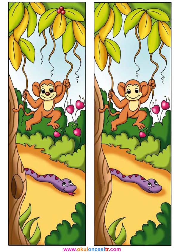 Yılan maymun iki resim arasındaki 7 farkı bulmaca sayfaları kağıdı ve aradaki farkı bul çalışma kağıtları bilgisayarınıza indirip yazıcıdan yazdırın, çıktı alın. Free find the difference worksheets printables.
