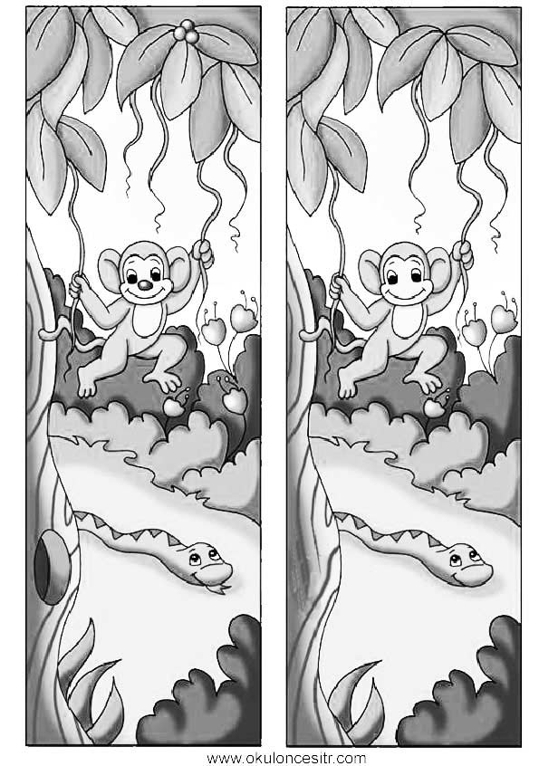 Yılan maymun iki resim arasındaki 7 farkı bulmaca sayfaları kağıdı ve aradaki farkı bul çalışma kağıtları bilgisayarınıza indirip yazıcıdan yazdırın, çıktı alın. Free find the difference worksheets printables.