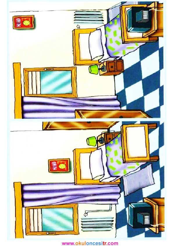 İki resim arasındaki 7 farkı bulmaca sayfaları kağıdı ve yatak aradaki farkı bul çalışma kağıtları bilgisayarınıza indirip yazıcıdan yazdırın, çıktı alın. Free find the difference worksheets printables.