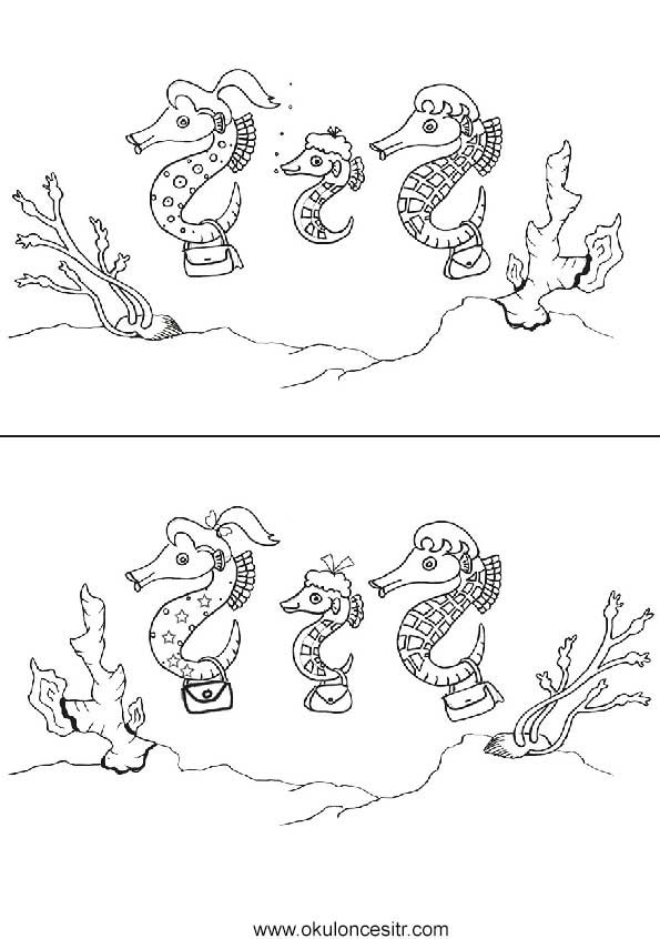 İki resim arasındaki 7 farkı bulmaca sayfaları kağıdı ve deniz atı aradaki farkı bul çalışma kağıtları bilgisayarınıza indirip yazıcıdan yazdırın, çıktı alın. Free find the difference worksheets printables.