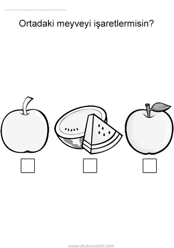 Arasında ortasında kavramı çalışma sayfası etkinlikleri ile meyveler elma, karpuz arasında ortasında mekanda konum kavramları çalışmaları etkinliği örnekleri kağıdı indirme, çıktı yazdırma. Free between worksheets download printable.