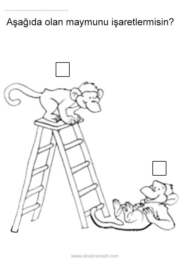 Aşağıda yukarıda kavramı çalışma sayfası etkinlikleri ve maymun aşağıda yukarıda mekanda konum kavramları çalışmaları etkinliği örnekleri kağıdı indirme, çıktı yazdırma. Free above and below worksheets download printable.