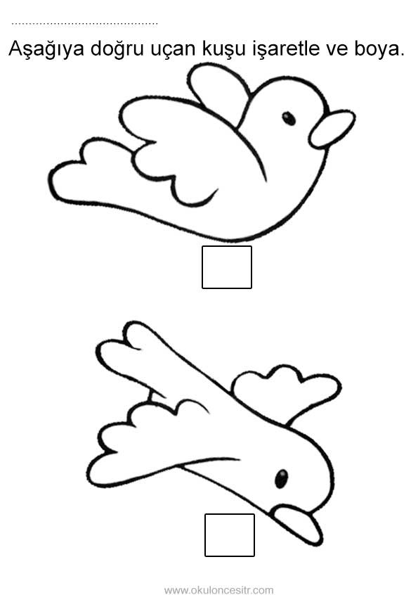 Aşağıda yukarıda kavramı çalışma sayfası etkinlikleri ve kuş boyama aşağıda yukarıda mekanda konum kavramları çalışmaları etkinliği örnekleri kağıdı indirme, çıktı yazdırma. Free above and below worksheets download printable.