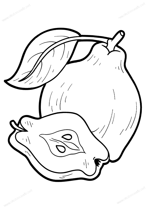 Okul öncesi, anasınıfı ve küçük çocukların parmak gelişimi için ortadan kesilmiş ayva boyama sayfası, ayva boyama kağıdı, ayva resmi, ayva boyaması, meyve boyama sayfası, meyva boyama sayfası, ayva meyvesi resmi, ayva şekli, ayva resmi kalıbı indirme sayfası.