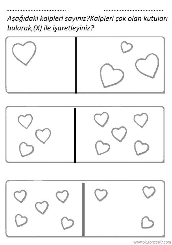 Az çok kavramı çalışma sayfası ve kalp az çok miktar kavramı çalışmaları oyunu, etkinliği örnekleri kağıdı indirme ve çıktı yazdırma. Free more or less worksheets download printable.