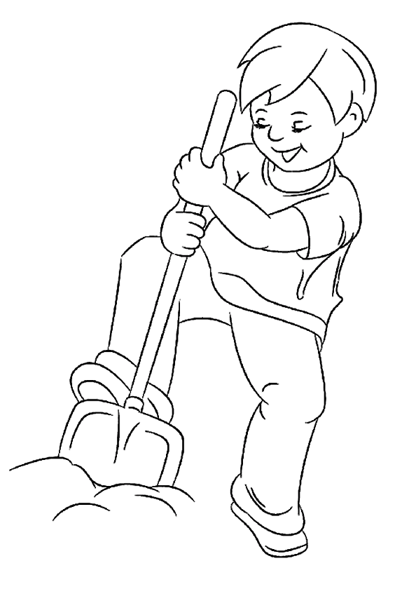 Elinde kürekli kum ile oynayan çocuk boyama sayfası ile resmi boyamaları sayfaları bilgisayara indir ve çıktı al, yazdır. Free coloring pages download and printable.