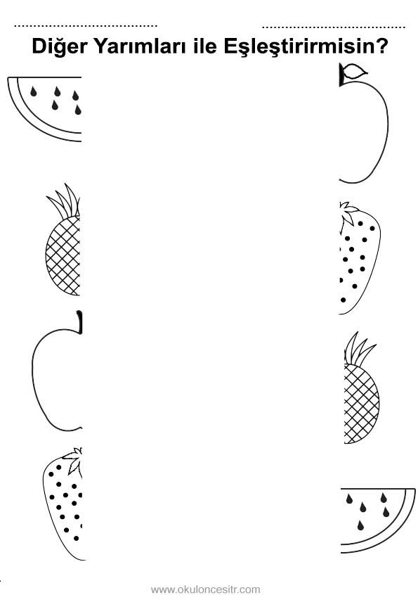 Bütün tam yarım kavramı çalışma sayfası, meyveler eşleştirme etkinlikleri ve bütün tam yarım miktar kavramı çalışmaları etkinlikleri oyunu örnekleri kağıdı indirme ve çıktı al yazdırma. Free whole and half worksheets download printable.