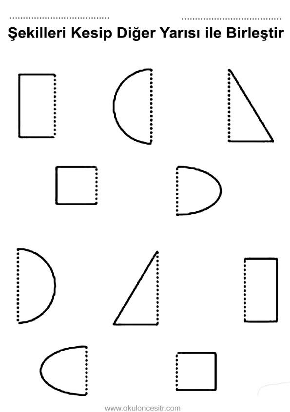 Bütün tam yarım kavramı çalışma sayfası, geometrik şekilleri eşleştirme etkinlikleri ve bütün tam yarım miktar kavramı çalışmaları etkinlikleri oyunu örnekleri kağıdı indirme ve çıktı al yazdırma. Free whole and half worksheets download printable.
