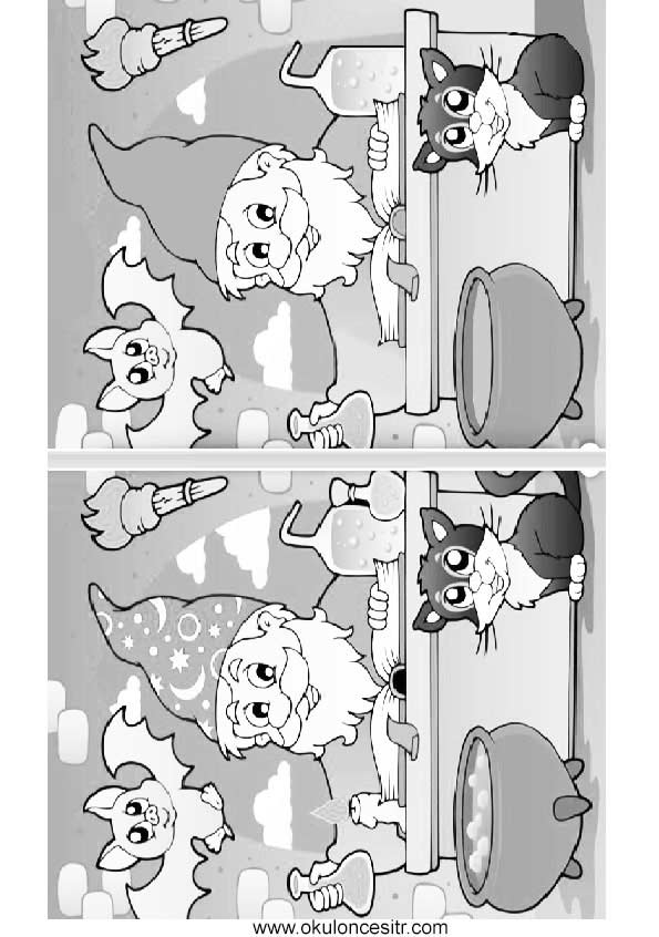 İki resim arasındaki 7 farkı bulmaca sayfaları kağıdı ve büyücü yarasa kedi kazan aradaki farkı bul çalışma kağıtları bilgisayarınıza indirip yazıcıdan yazdırın, çıktı alın. Free find the difference worksheets printables.