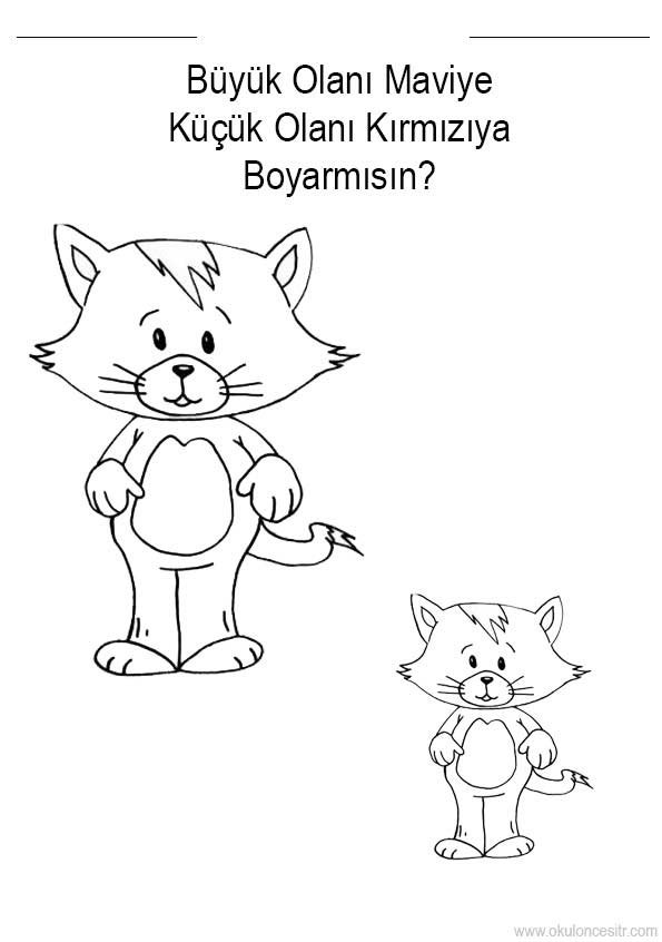 Büyük küçük kavramı çalışmaları sayfası etkinlikleri ve kedi büyük küçük boyut kavramları oyunu örnekleri kağıdı indirme ve çıktı al yazdırma. Free big and small worksheets download printable.