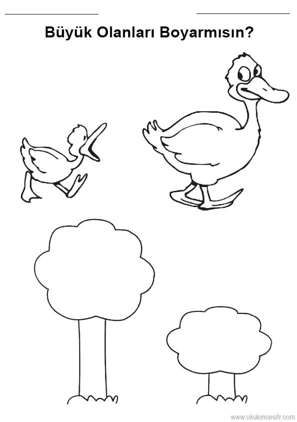 Büyük küçük kavramı çalışmaları sayfası etkinlikleri ve yavru ördek büyük küçük boyut kavramları oyunu örnekleri kağıdı indirme ve çıktı al yazdırma. Free big and small worksheets download printable.