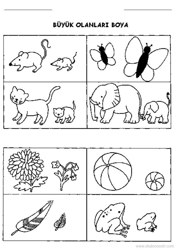Büyük küçük kavramı çalışmaları sayfası etkinlikleri ve büyük küçük boyut kavramları oyunu örnekleri kağıdı indirme ve çıktı al yazdırma. Free big and small worksheets download printable.