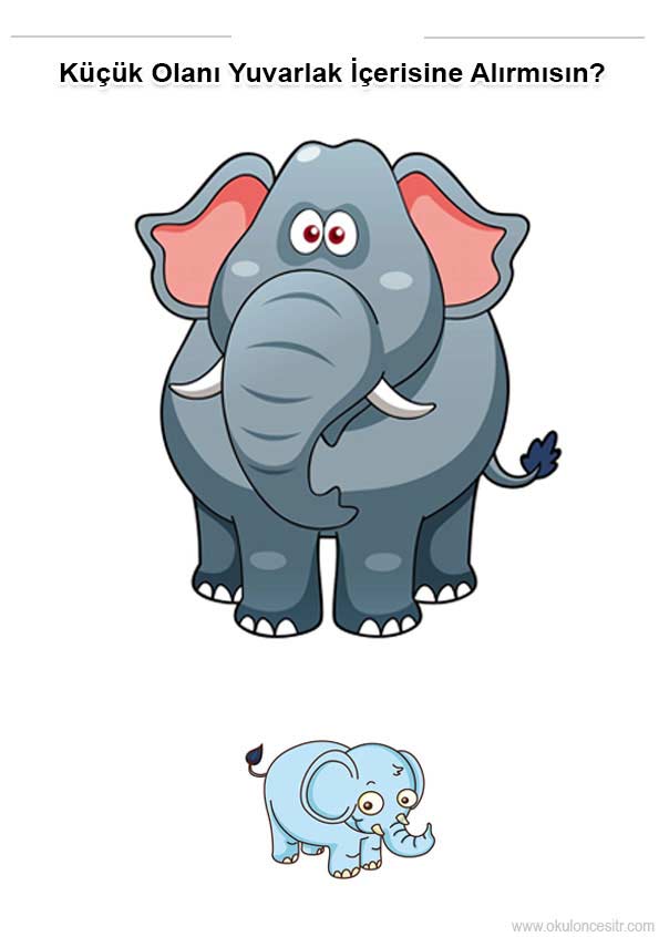 Büyük küçük kavramı çalışmaları renkli sayfası etkinlikleri ve hayvanlar fil büyük küçük boyut kavramları oyunu örnekleri kağıdı indirme ve çıktı al yazdırma. Free big and small worksheets download printable.