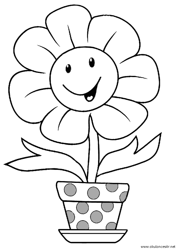 Gülen saksıdaki çiçek boyama sayfası, çiçek boyama sayfaları, çiçek resmi boyama, basit küçük çocuklar için kolay zor online çiçek boyaması oyunu aşağıda ücretsiz pdf olarak indirebilir ve yazdırabilirsiniz. Okulöncesi, anasınıfı ile ilkokul eğitim sitesi mobil uyumlu, telefondan ve bilgisayardan boyayabilirsiniz. Free flowers coloring pages and printables for kids.
