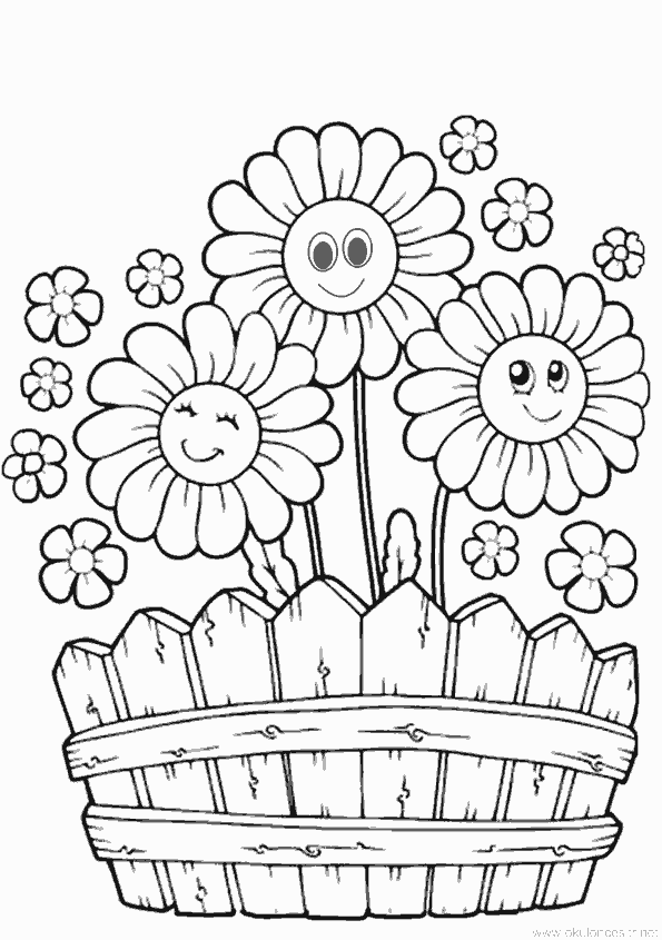 Okul öncesi ve ilkokul sınıf için saksıda çiçek boyama sayfaları ve çiçek boyama resimleri içeren etkinlik sayfası indirin çıktı alın.