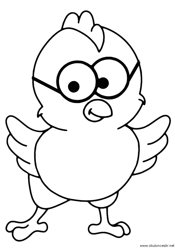 Gözlüklü civciv boyama sayfası ve civciv boyamaları sayfaları, civciv boyaması resmi oyunu, renkli, kolay, basit boyama kalıbı. Civciv nasıl çizilir kağıdı , resimleri örnekleri, ücretsiz pdf yazdır çıkart indir. Free chick coloring page download printable kindergarten kids.