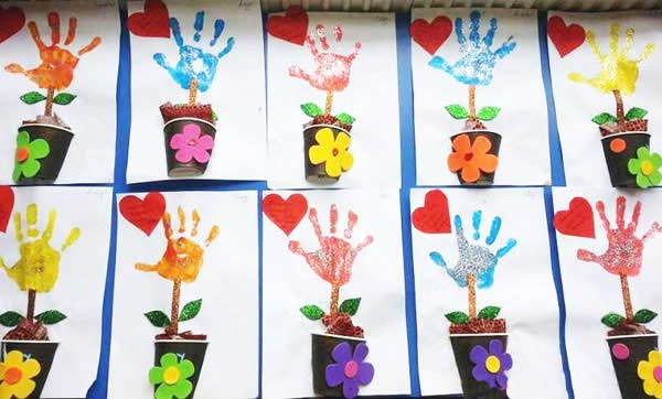 El baskısı saksıda çiçek baskısı çalışmaları ve etkinlikleri örnekleri çalışması.