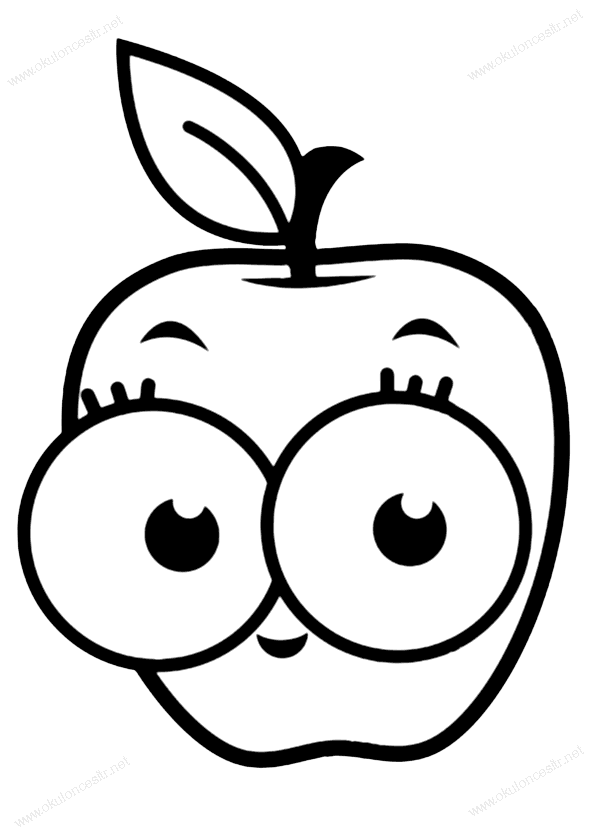 Okul öncesi, anasınıfı ve küçük çocukların parmak gelişimi için kocaman gözleri olan elma boyama sayfası, elma boyama kağıdı, elma boyama sayfaları, elma resmi, meyve boyama sayfası, elma boyaması, meyva boyama sayfası, elma meyvesi resmi, elma kalıbı indirme sayfası.
