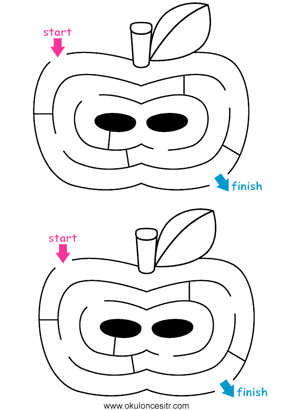 Elma labirent bulmaca sayfaları etkinlikleri ve zor, kolay, resimli labirent bulmaca kağıdı örneklerini bilgisayarınıza indirip, çıktısını alabilirsiniz, yazdırabilirsiniz. Free maze worksheets printables site.