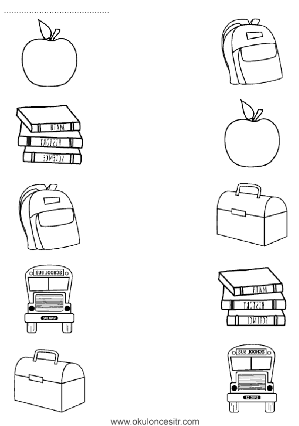 Eşleştirme çalışma kağıdı ve okul çantası ücretsiz eşleştirme etkinlikleri çalışma sayfaları kağıtları ile oyunları indirme, yazdır. Free matching worksheets download and printables.