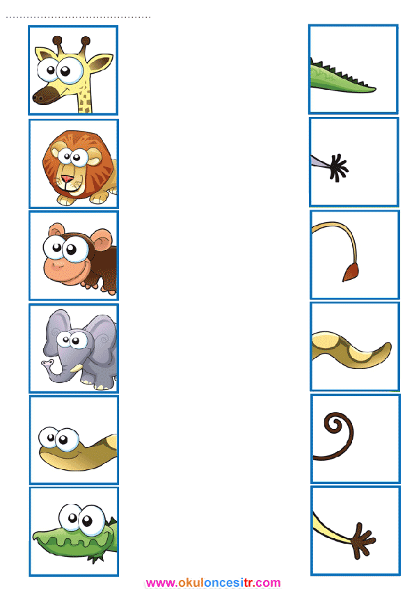 Eşleştirme çalışma kağıdı ve yılan maymun timsah hayvanların kuyruklarını ücretsiz eşleştirme etkinlikleri çalışma sayfaları kağıtları ile oyunları indirme, yazdır. Free matching worksheets download and printables.