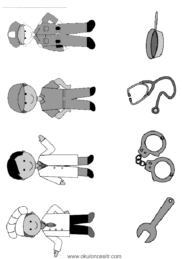 Meslekleri eşleştirme çalışma kağıdı ve polis, doktor, aşçı, işçi ücretsiz eşleştirme etkinlikleri çalışma sayfaları kağıtları ile oyunları indirme, yazdır. Free matching worksheets download and printables.