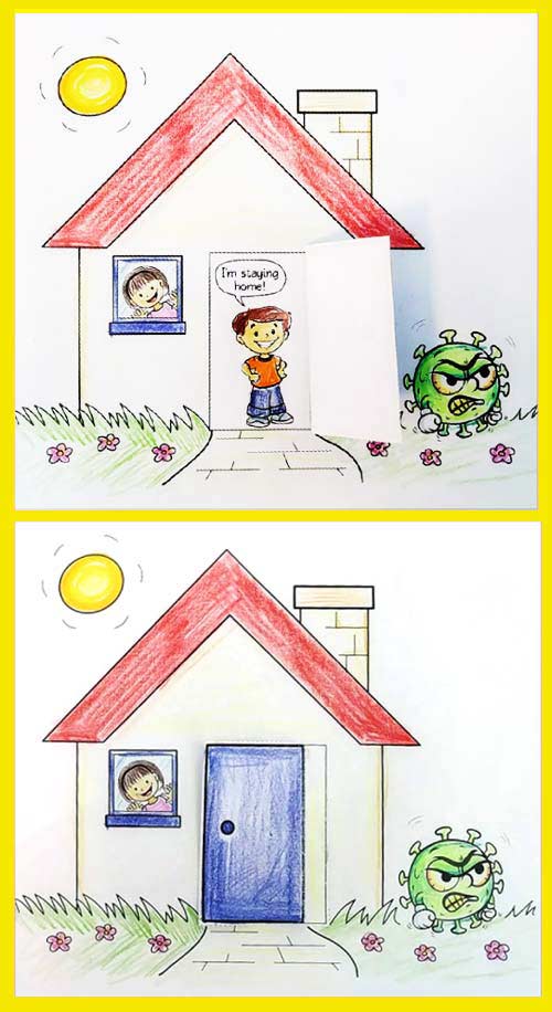 Evdeyken koronadan korunmak daha kolay olduğunu gösteren dinamik bir okulöncesi ve ilkokul için etkinlik sayfası ektedir. Aşağıdan etkinliği çıktı alarak, yukarıdaki resim ki gibi yapabilirsiniz.