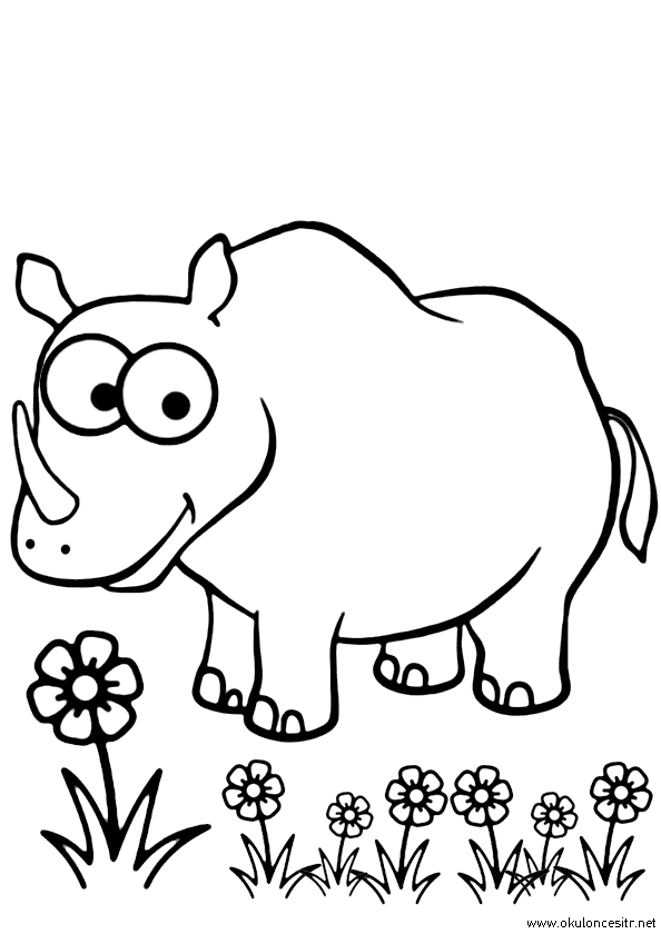 Çiçekler arasında dolaşan gergedan boyama sayfası ile gergedan boyama sayfaları oyunu, siyah beyaz basit, kolay gergedan boyaması, renkli boyamaları çizimi kalıbı. Gergedan nasıl çizilir, ücretsiz olarak kağıdı yazdırıp çıkartın ya da pdf resimleri indirin. Free preschool rhino coloring page download and printable kids, kindergarten.