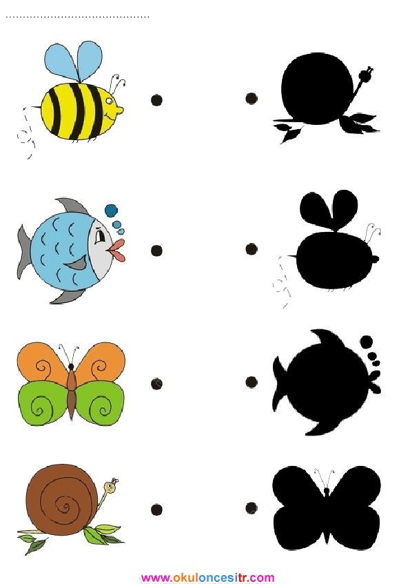 Gölge eşleştirme çalışma sayfası ve hayvanlar, balık, kelebek, arı ücretsiz eşleştirme etkinlikleri çalışma sayfaları kağıtları ile kağıtları indirme, yazdır. Free shadow matching worksheets download and printables.