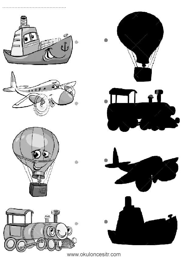 Gölge eşleştirme çalışma sayfası ve tren, gemi, trafik haftası ücretsiz eşleştirme etkinlikleri çalışma sayfaları kağıtları ile kağıtları indirme, yazdır. Free shadow matching worksheets download and printables.