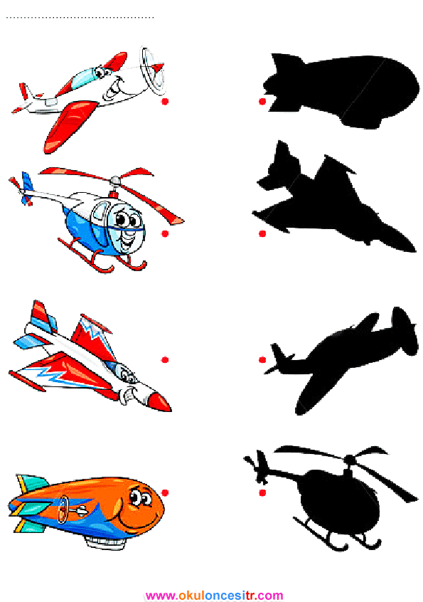 Gölge eşleştirme çalışma sayfası ve uçak, helikopter ücretsiz eşleştirme etkinlikleri çalışma sayfaları kağıtları ile kağıtları indirme, yazdır. Free shadow matching worksheets download and printables.