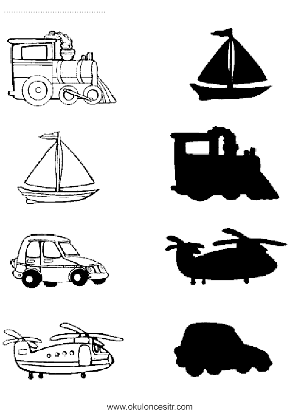 Gölge eşleştirme çalışma sayfası ve tren, gemi, uçak ücretsiz eşleştirme etkinlikleri çalışma sayfaları kağıtları ile kağıtları indirme, yazdır. Free shadow matching worksheets download and printables.