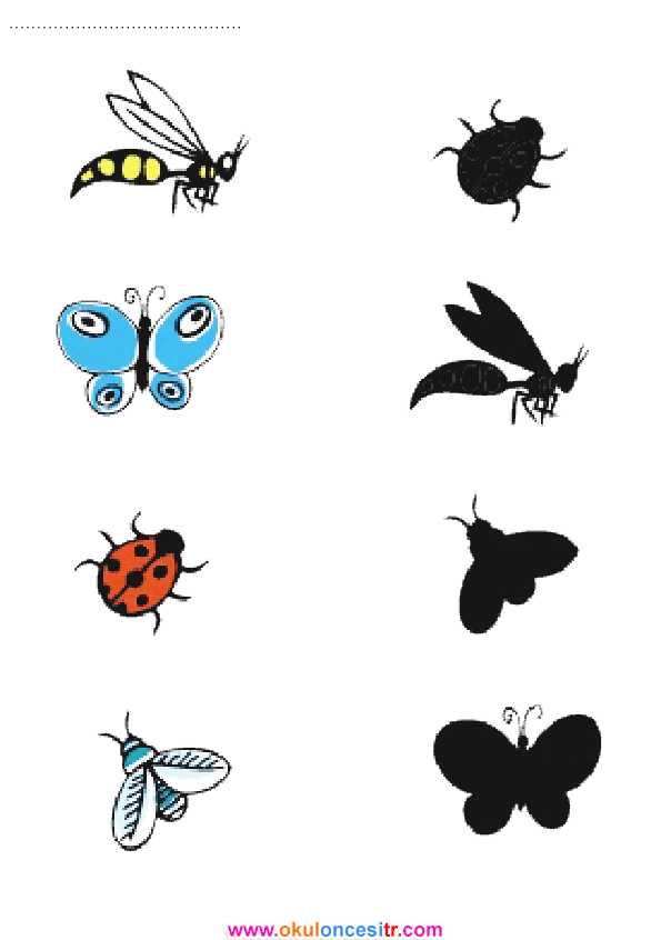 Gölge eşleştirme çalışma sayfası ve böcekler sinek kelebek uğur böceği ücretsiz eşleştirme etkinlikleri çalışma sayfaları kağıtları ile kağıtları indirme, yazdır. Free shadow matching worksheets download and printables.