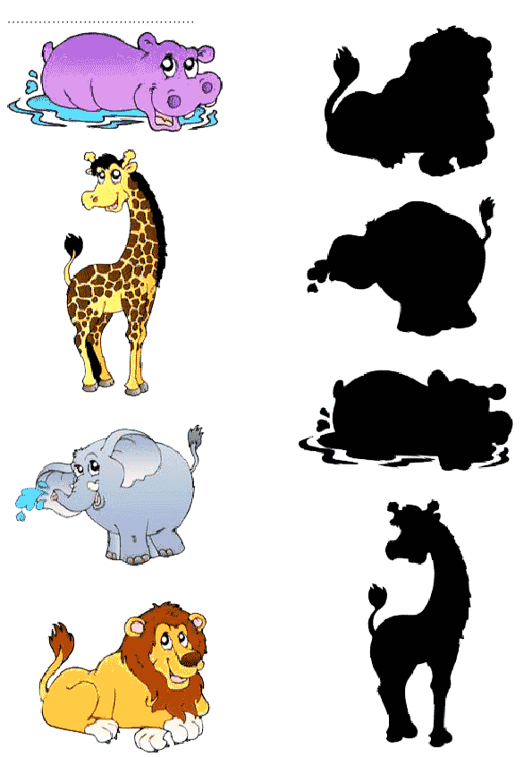 Gölge eşleştirme çalışma sayfası ve su aygırı, aslan, fil hayvanlar ücretsiz eşleştirme etkinlikleri çalışma sayfaları kağıtları ile kağıtları indirme, yazdır. Free shadow matching worksheets download and printables.